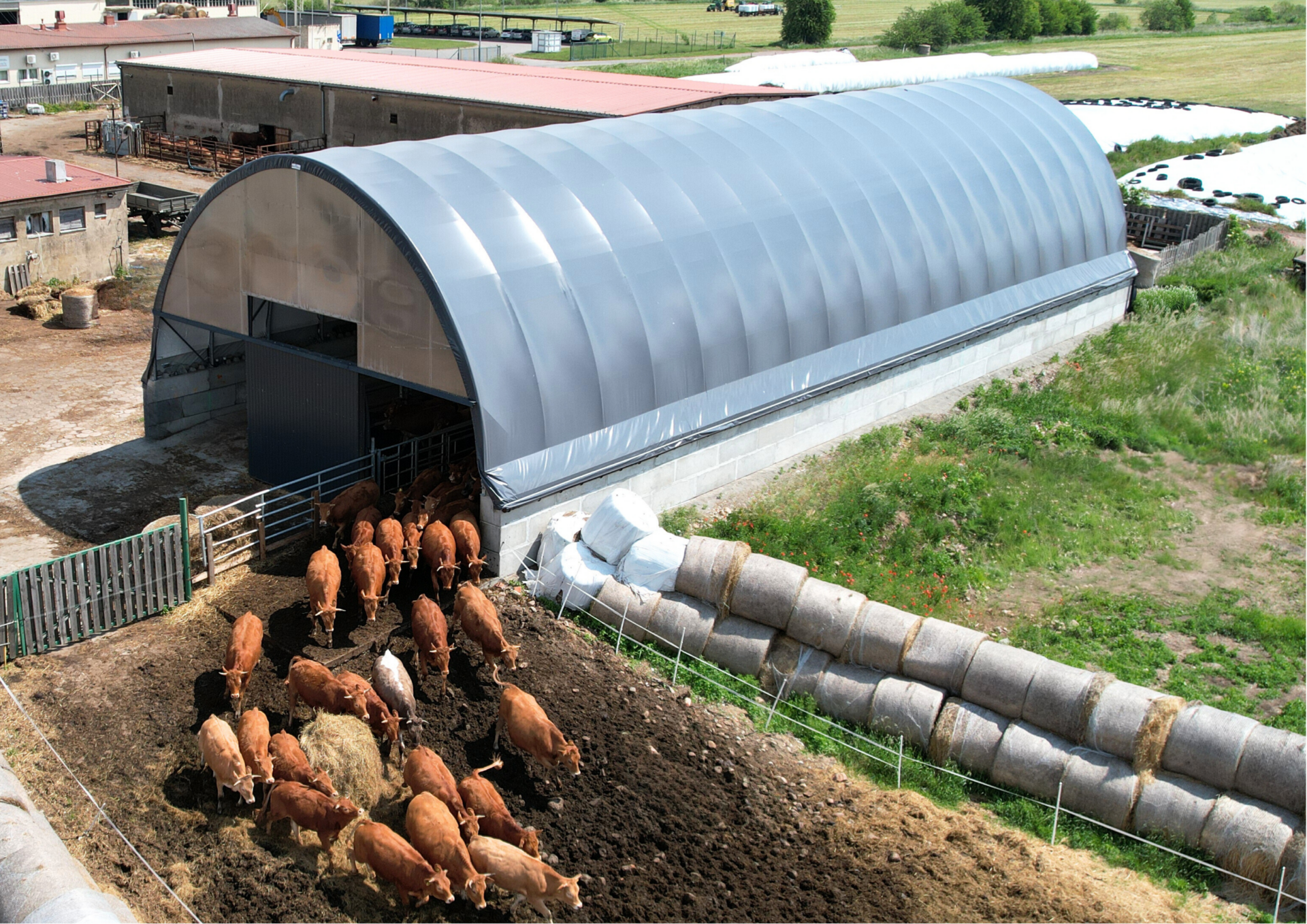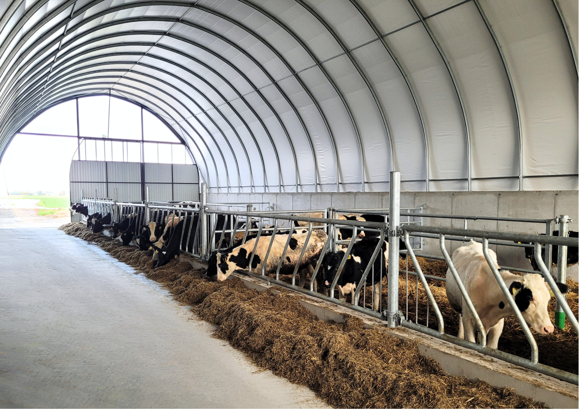 - Solidna, stalowa konstrukcja i odporne na wszystkie czynniki atmosferyczne pokrycie – każda hala łukowa dla bydła mięsnego czy mlecznego jest dostosowywana do lokalnych warunków śniegowych i wiatrowych, co gwarantuje zgodność z normami i bezpieczeństwo użytkowania.