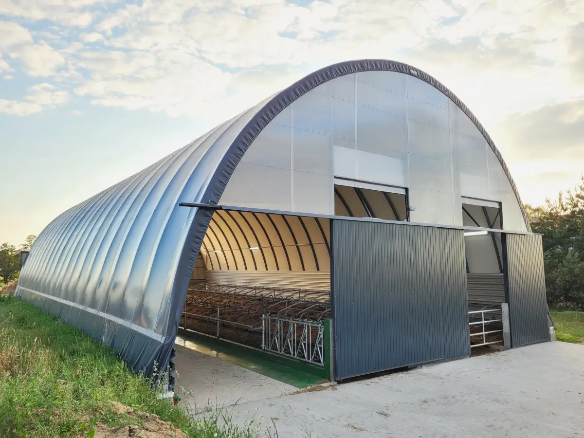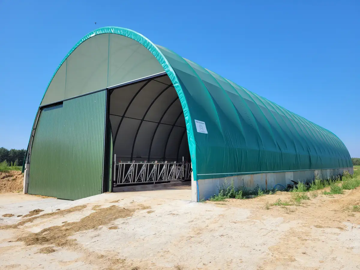 - Niskie koszty – hale namiotowe dla bydła są nawet kilkukrotnie tańsze niż klasyczne obory murowane, a przy tym oferują równie wysoką funkcjonalność.