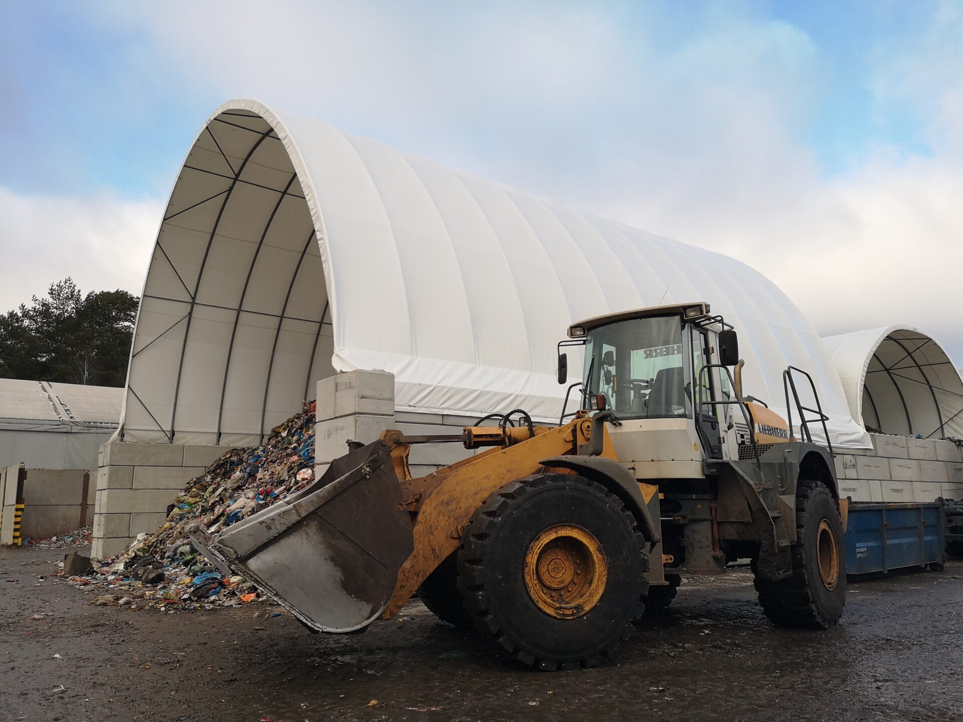 Firmy zajmujące się zagospodarowaniem odpadów coraz częściej stają przed obowiązkiem spełnienia regulacji prawnych w zakresie ochrony środowiska. To skłania je do poszukiwania i wdrażania innowacyjnych rozwiązań technologicznych. Jednym z takich rozwiązań zapewniającym szybkie i ekonomiczne zadaszenie boksów z odpadami są z pewnością hale tunelowe oferowane przez firmę Arbena. Przedstawiona realizacja to dwa obiekty: jeden o szerokości 12 m, długości 15 m i wysokości 6,75 m (plus mury), zaś drugi ma 8 m szerokości, 12 m długości i 3,6 m wysokości (nie licząc murów).
