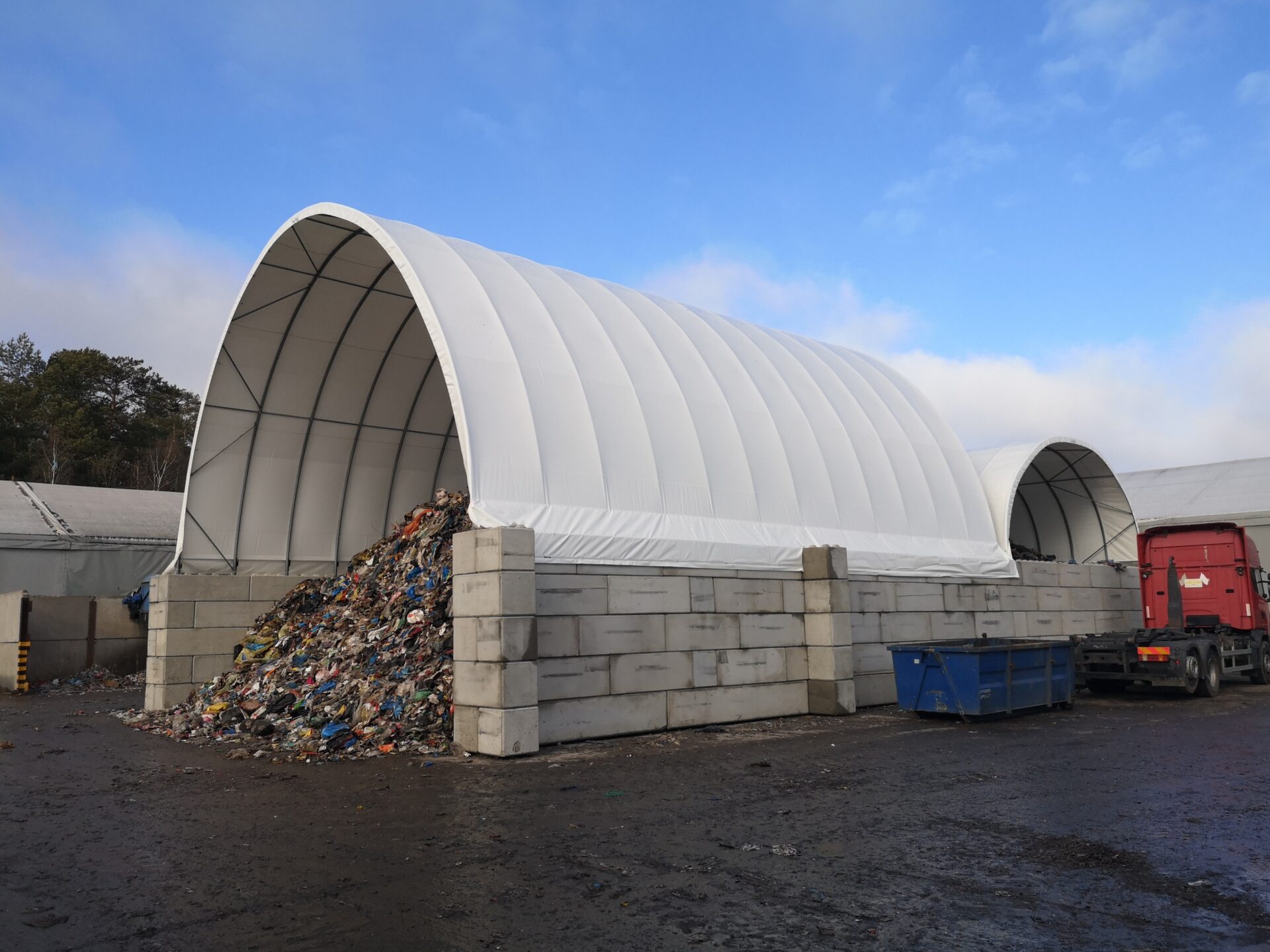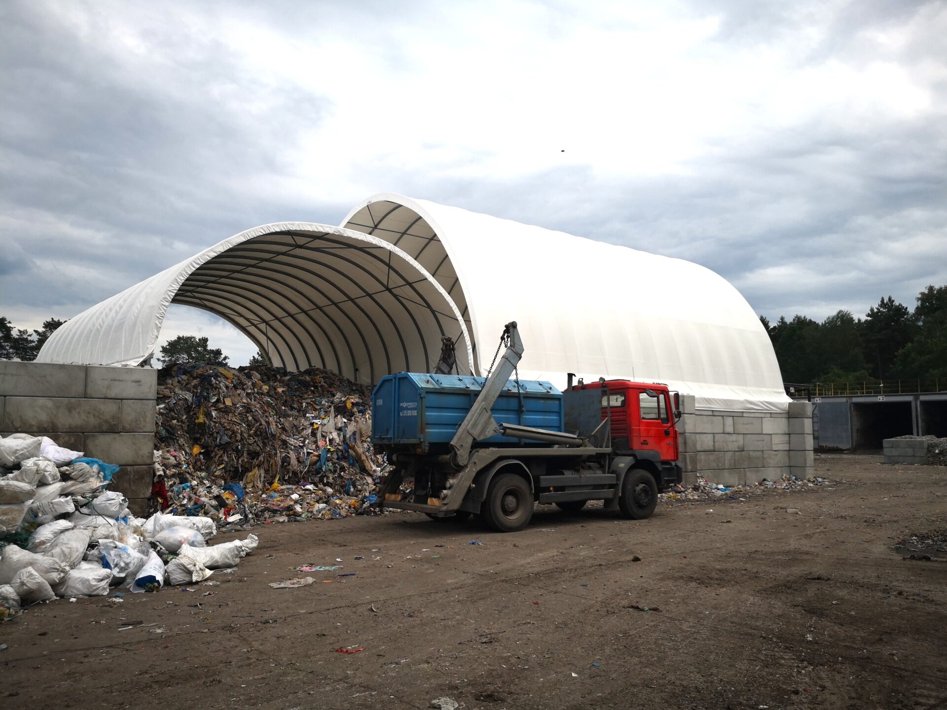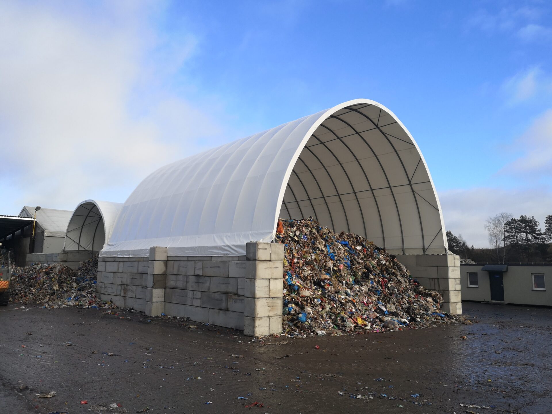 Firmy zajmujące się zagospodarowaniem odpadów coraz częściej stają przed obowiązkiem spełnienia regulacji prawnych w zakresie ochrony środowiska. To skłania je do poszukiwania i wdrażania innowacyjnych rozwiązań technologicznych. Jednym z takich rozwiązań zapewniającym szybkie i ekonomiczne zadaszenie boksów z odpadami są z pewnością hale tunelowe oferowane przez firmę Arbena. Przedstawiona realizacja to dwa obiekty: jeden o szerokości 12 m, długości 15 m i wysokości 6,75 m (plus mury), zaś drugi ma 8 m szerokości, 12 m długości i 3,6 m wysokości (nie licząc murów).